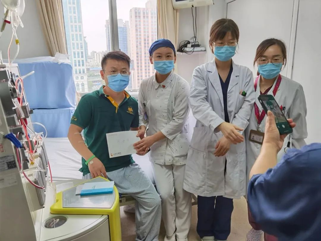 图为陈强经历4个多小时的造血干细胞采集,要立即将其送到其他医院移植给小女孩的照片。