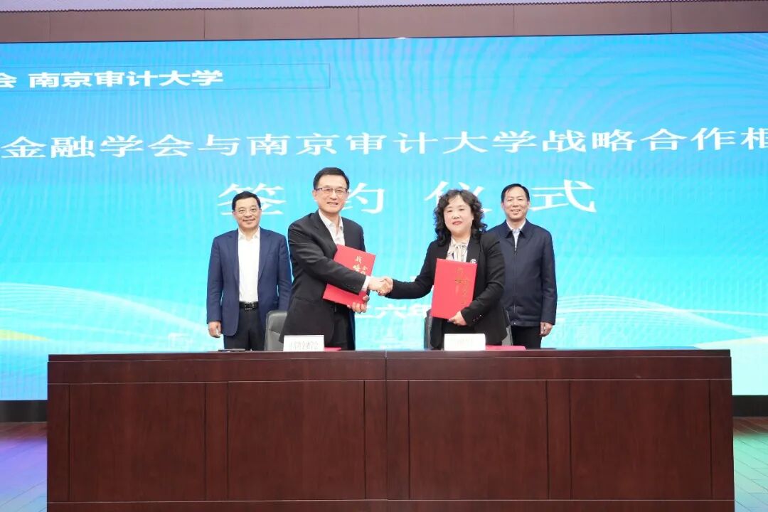 会上,江苏省金融学会与南京审计大学签署战略合作框架协议,陈锋与卢亚娟分别代表双方签约。双方将以服务江苏金融强省建设为目标,围绕科研与学科建设、人才培养与评价、平台建设与学术交流、实践与人才交流四个方面开展合作,为专委会后续发展奠定坚实基础。陈锋宣读《江苏省金融学会关于成立教育培训与学科建设专业委员会的通知》。