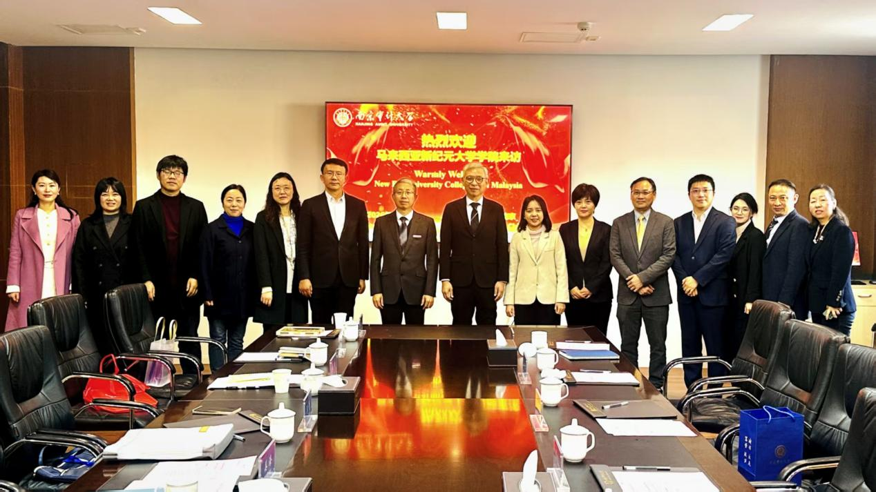近日,马来西亚新纪元大学学院校长莫顺宗一行来校访问,与我校开展合作洽谈,双方围绕区域国别研究、审计与国家治理、人才培养及国际传播等议题进行了交流与讨论。我校党委常委、副校长姜海出席,马来西亚腊玛国际智能技术有限公司董事长蒋兆玉、马来西亚 IRECS 公司董事长吴家扬、江苏凤凰高等教育出版有限公司副总经理李丰园及主任姚喆,我校联合研究院、文学院和外国语学院等相关部门负责人共同参会。国际合作与交流办公室主任王芳主持会议。
