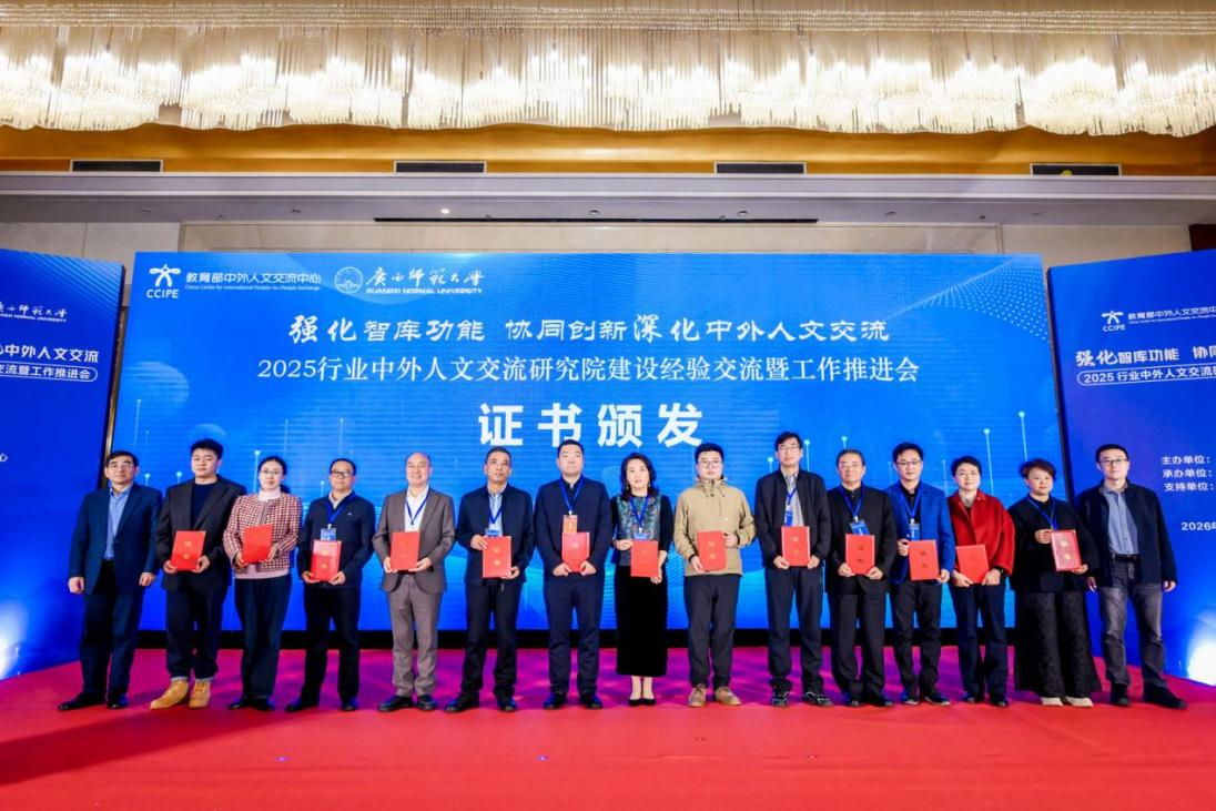 近日,由教育部中外人文交流中心主办的2025行业中外人文交流研究院建设经验交流暨工作推进会在广西师范大学召开。会议梳理总结2024、2025年中外人文交流研究院(基地、所、智库)建设进展与成果,交流经验、破解难题、研讨举措,推进研究院高质量、可持续发展。我校党委常委、副校长李乾文应邀率队出席会议并作主题演讲。