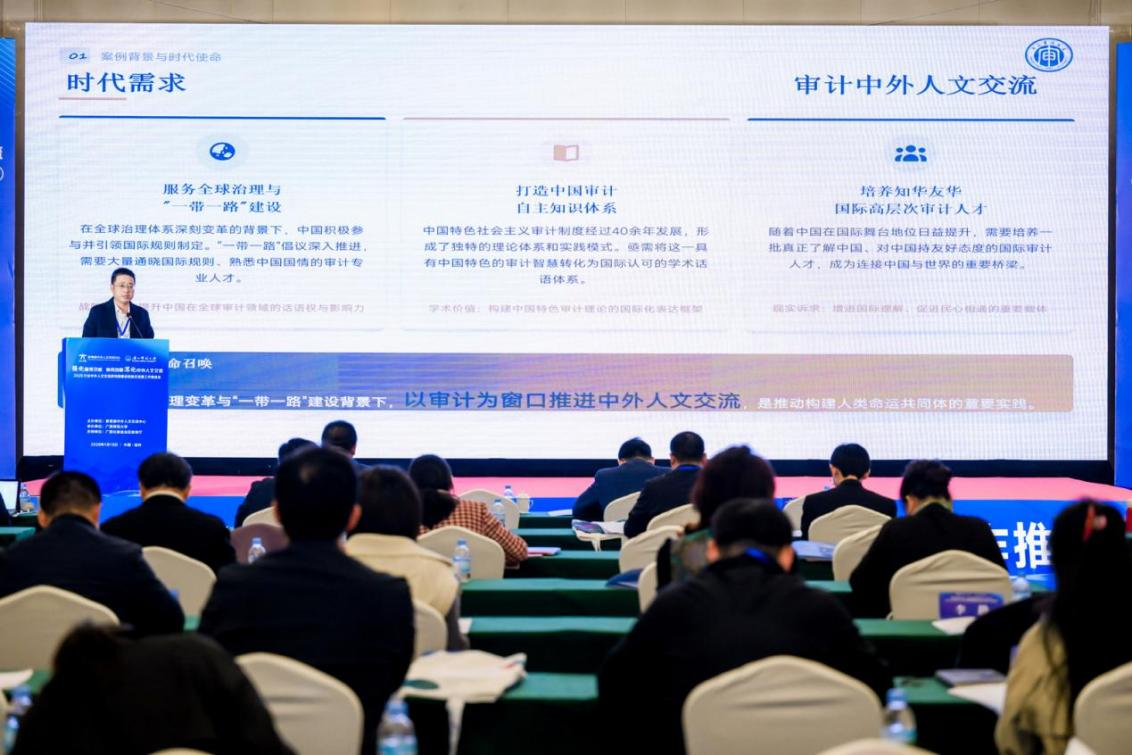 李乾文分享了南京审计大学审计中外人文交流研究院的建设经验。他表示,该研究院结合时代需求,以审计专业硕士国际班为载体,不断推进审计中外人文交流,逐步形成了特色鲜明的核心理念,培养了一大批知华友华爱华的国际审计人才,服务审计外交。研究院坚持校政协同,形成“四共”“四通”机制和多元实践基地共建,推动国际审计人才培养提质增效。