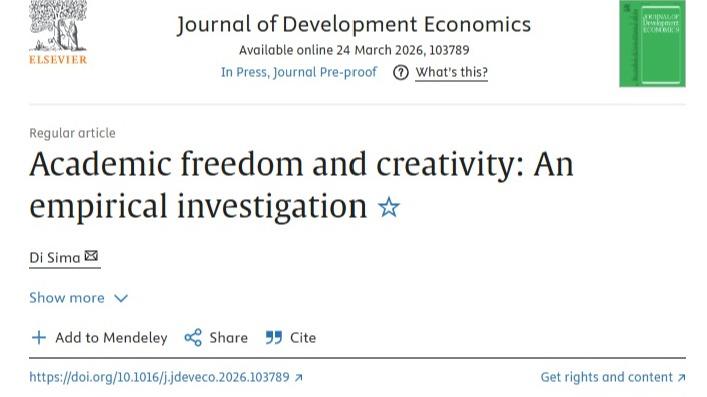 近日,我校教师司马帝的独作论文“Academic freedom and creativity: An empirical investigation”在国际期刊Journal of Development Economics上发表。 Abstract This study examines the impact of academic freedom reform on university graduates’ creativity using a large, multi-decade, cross-country sample. We constr