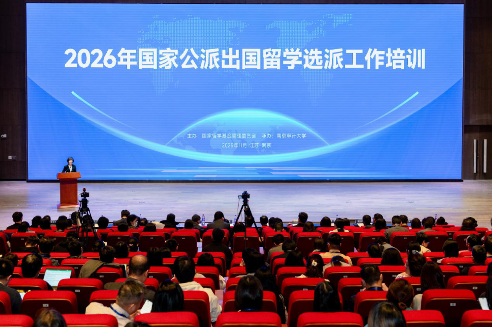 11月26日,2026年国家公派出国留学选派工作培训在南京成功举办。此次培训由国家留学基金管理委员会(以下简称国家留学基金委)主办,南京审计大学承办。教育部国际合作与交流司、财务司、高等教育司有关领导出席,各省、自治区、直辖市教育厅(委)、人事厅(局)和有关高等院校等近200家单位的300余名代表参加。