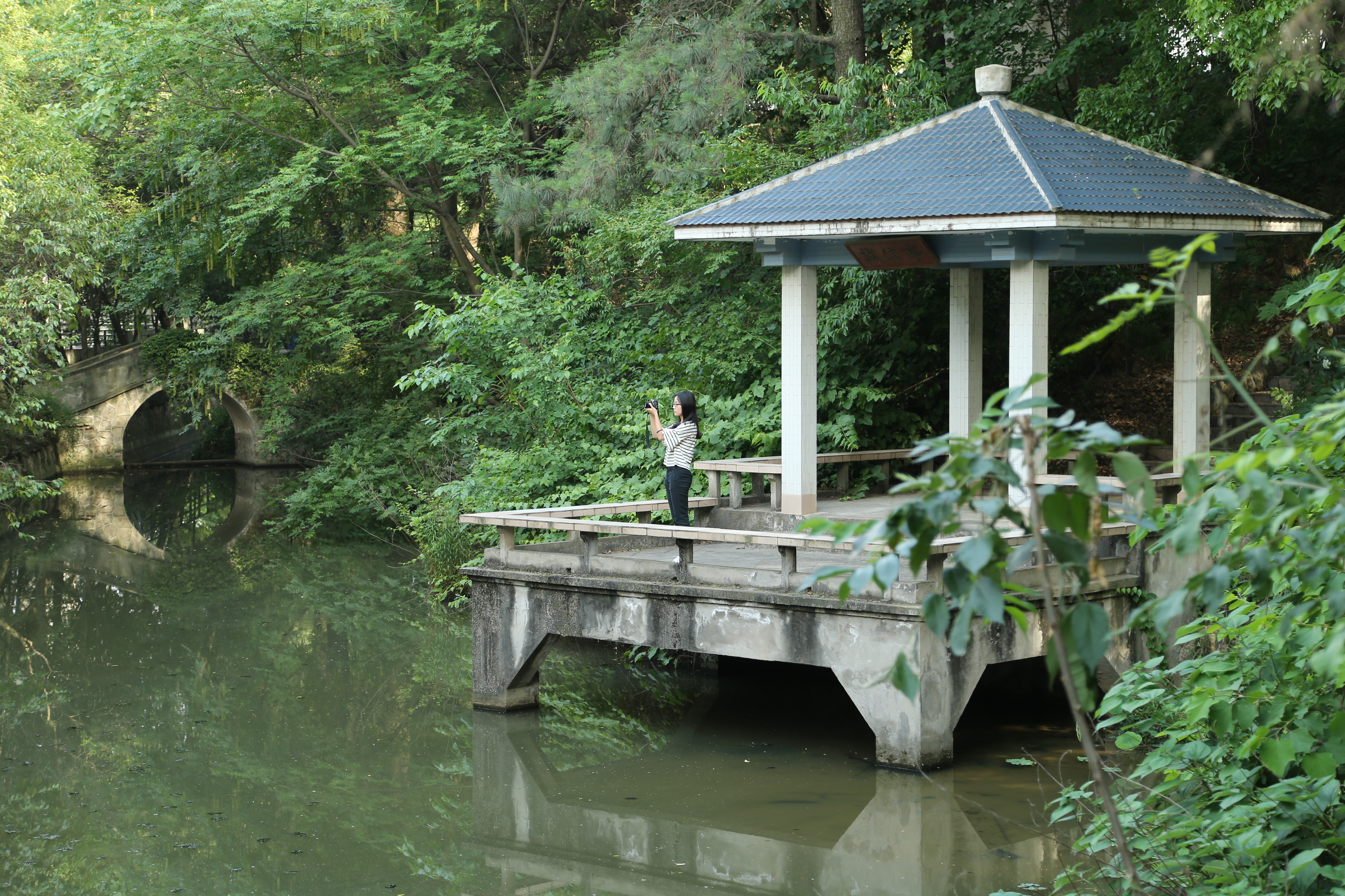 诚信亭临塘而建,与之衬托。孟子曾说过:“诚者,天之道也;思诚者,人之道也。”这正好与南审校训“诚信求是,笃学致公”相符,预示着欲求学先做人,欲做人必诚信的道理。