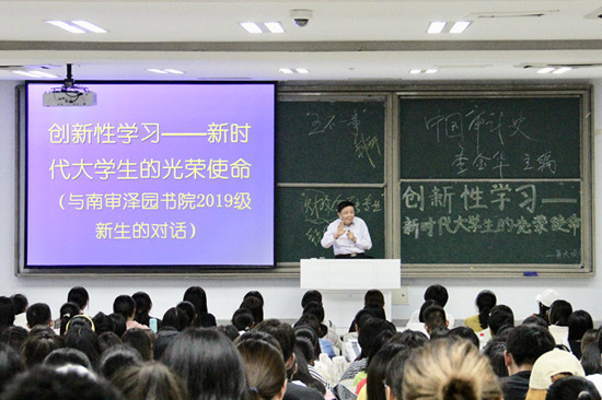 9月27日晚,泽园书院邀请我校退休教师蒋大鸣以“创新性学习——新时代大学生的光荣使命”为主题为新生做讲座。泽园书院院长肖建新教授主持并向到场的泽园书院2019级300多名新生介绍了蒋大鸣教授的简历与取得的成就。