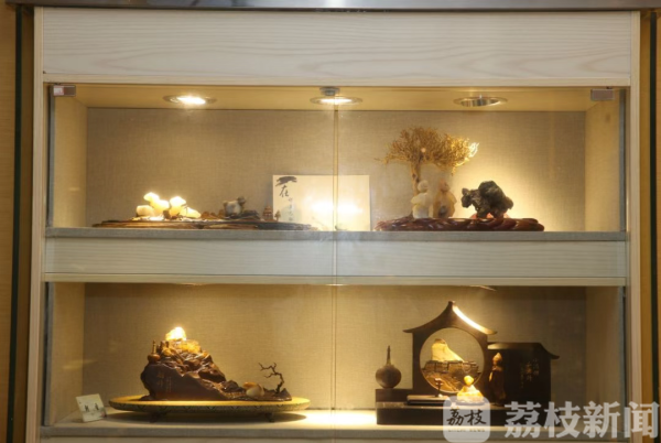 这些年杨老师夫妇省吃俭用,在石头上花费很多,可是当有人出六位数购买一幅作品时,他拒绝了,因为舍不得。但他却一直想着为南审尽一份心意,于是有了学校的石艺馆,那里收藏着许多他的作品。