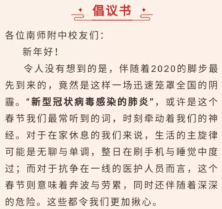 这时,她看到南京师范大学附属中学校友志愿团发布了一条关于募集口罩的倡议书,她开心的说,“觉得终于能有机会自己可以做点事情了,”于是她立刻报名参加了南师附中校友组织的召集活动。