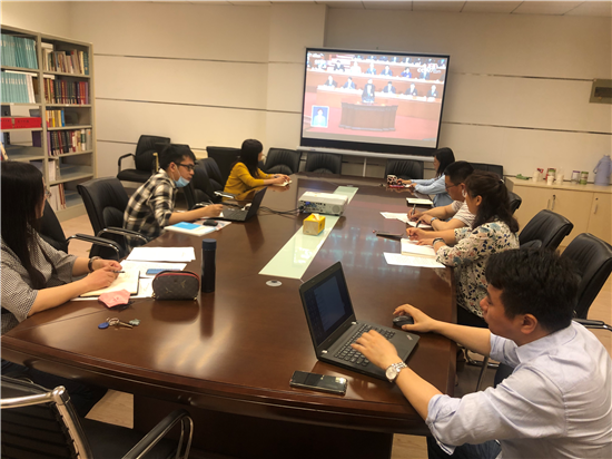 (培训教育学院组织全体教职工集中收看会议开幕盛况)