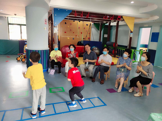 吴朝国详细询问孩子的身体状况和生活学习情况,对爱德儿童发展中心细致有序开展工作给予充分肯定和赞扬。