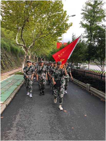为了在军训中磨练新生的坚强意志,增强团队凝聚力,我校军训团于9月23日在校内开展了一项极为重要的军训训练项目:拉练行军。全体军训学员、教官、辅导员以及医务人员全程参与,顺利完成了8公里的列队行军。