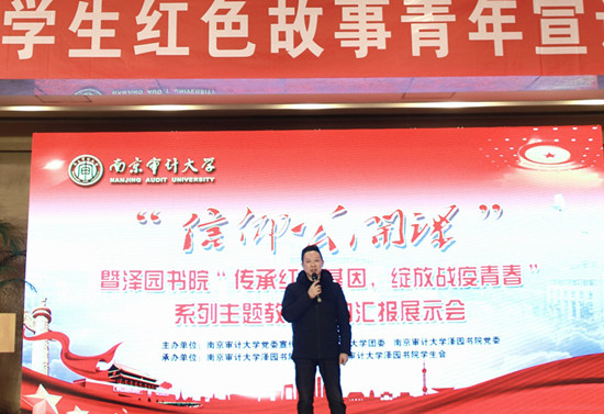 为进一步深化“传承红色基因”系列主题教育活动,11月27日下午,我校泽园书院“传承红色基因,绽放战疫青春”系列主题教育活动汇报展示会于敏达学术报告厅举办。校党委常委、党委统战部部长张维,团省委高校工作部副部长卢奎、江苏省朗诵协会副秘书长、江苏广播电视总台著名主持人徐涛、雨花台烈士纪念馆社会教育部副部长郭琦、雨花台烈士纪念馆社会教育部公共服务科高翱、校关工委副秘书长阮星光、邓欣、党委宣传部副部长杨飞、校团委副书记杨放敏、泽园书院党委副书记刘海燕、李玉淑出席本次活动。