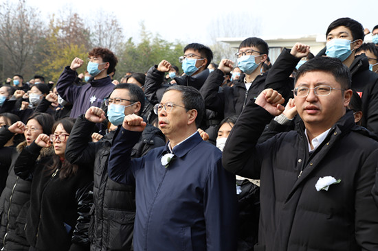 最后全体师生宣誓祈愿,“我宣誓,百年兴衰,记我国殇。昭昭前事,惕剔后人。勿忘国耻,振兴中华!”。