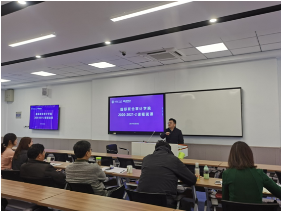 2月28日中午,国际联合审计学院在IFA-2教室开展2021春学期课程说课,国际联合审计学院院长李敏、副院长张文秀、首批课程建设负责人代表蔡远及2021春学期任课教师参加。