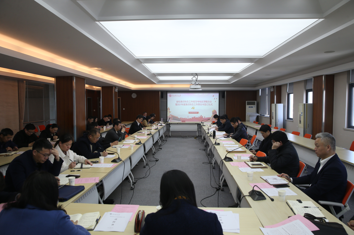 3月25日上午,我校首轮意识形态工作规范考核反馈会暨2021年度意识形态工作责任书签订仪式在中和楼502会议室举行。校党委副书记张建红出席,首轮意识形态规范考核工作组组长、各二级党组织负责人,相关职能部门负责人参加会议,校党委常委、党委宣传部部长强飙主持。