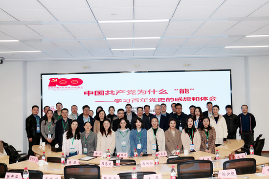 高志虎以《中国共产党为什么“能”——学习百年党史的感想和体会》为题,从中国共产党百年来取得的巨大成就、中国共产党为什么“能”和建设社会主义现代化国家新征程前景展望三个方面分享了党史学习的感想和体会。高志虎指出,一百年来,中国共产党坚持解放思想和实事求相统一,坚持固本培元和守正创新相统一,不断开辟马克思主义新境界,形成了毛泽东思想、邓小平理论、“三个代表”重要思想、科学发展观,形成了习近平新时代中国特色社会主义思想,为党和人民事业发展提供了科学理论指导。他结合史实将党的百年历史成就归纳总结为“统一、主流、开放、平衡、自信”。他表示,中国共产党“能”的原因主要有五个:一是中国共产党是以人民为中心,始终不忘初心、牢记使命的“使命型”政党;二是“党领导一切”具有鲜明的制度优势;三是新型政党制度展现出协商民主的独特优势;四是中国共产党始终坚持思想建党、理论强党;五是中国共产党不断强调党员干部要树立“四个意识”。最后,他从中美高层对话等热点问题对党领导下建设社会主义现代化国家新征程进行了美好展望。