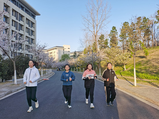 清晨6点半,同学们从泽园餐厅出发,途径润园操场、竞秀主楼、体育馆,于国际学院终止,路程全长约4千米。为确保晨跑质量,学院于路线途中设置5个人脸识别打卡点,同时建议学生每月至少完成20次打卡,并通过“审体通”软件进行记录和排名。