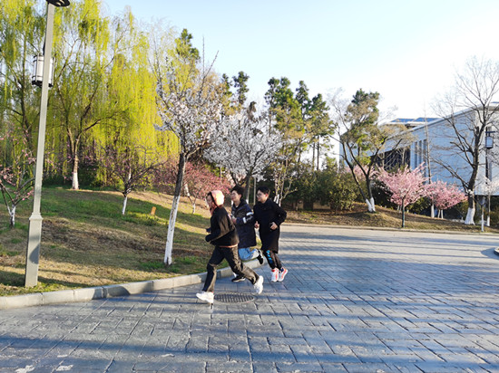 IBA2班的李阳说:“看樱花纷飞,闻鸟虫啼鸣,听书声琅琅,阅中外典经。‘数卷新书香篆息,园花落尽到荼蘼’,我在晨跑晨读中体会到了古诗里描绘的美好情形。”