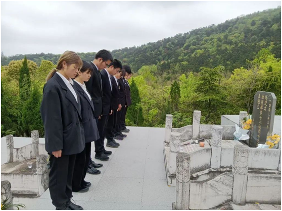 4月1日下午细雨绵绵,求雨山烈士塔纪念碑上笔力遒劲的“革命烈士永垂不朽”八个大字如炬似剑。沁园书院师生党员代表和部分入党积极分子身着深色服装,佩戴党员徽章,怀着无比崇敬的心情瞻仰烈士纪念碑,伫立默哀,缅怀先烈。“三浦战役”的场景仿佛在眼前一幕幕闪过,烈士们“革命理想高于天”的坚定信仰深深感染着每一位党员。在烈士纪念碑前,党员们重温入党誓词,郑重作出承诺。全体师生党员还共同学习了求雨山烈士塔纪念碑碑记内容,铭记先烈事迹,传承先烈精神。“我们要汲取红色力量,以史为鉴,珍爱和平,以“无我”之境砥砺前行,为国家奋斗终生,用更加美好的未来告慰先辈。”学生党员们这样说道。
