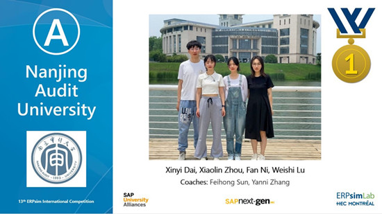 北京时间6月11日凌晨,第十三届ERPsim全球总决赛落下帷幕。我校实验中心孙飞虹老师、张燕妮老师指导的南京审计大学战队(团队成员:戴心怡、周小琳、倪凡、陆唯实),获得全球总决赛冠军。这是我校继2017年亚太区夺冠、2020年中国赛区夺冠后,首次荣膺全球赛冠军。