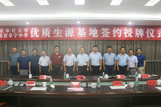 6月27日上午,我校赴江苏省阜宁中学举办“南京审计大学优质生源基地”签约授牌仪式,仪式在该校德润楼四楼会议室举行。阜宁县审计局局长戴明乾,副局长顾洪祥,江苏省阜宁中学党委副书记、校长徐晓华,党委书记陈华,副校长钱立勇、俞翔,我校党委副书记、副校长王会金出席此次签约授牌仪式。
