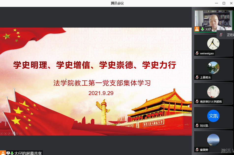 9月29日下午,教工第一党支部开展了线上集体学习活动,以学习习近平总书记关于“四史”学习教育的重要论述为主题,支部书记靳宁、支部纪检委员郝炜领学。靳宁首先传达了我校师德专题教育实施方案,对支部开展师德专题教育的工作情况做了初步总结,并对下一步的工作安排做了介绍。随后,靳宁以“学史明理、学史增信、学史崇德、学史力行”为题,讲述了自己的心得体会。郝炜从党史学习“学什么”“为何学”“怎么学”三个方面谈了自己的心得体会。与会支部同志结合自身学习情况畅谈体会,提出了不少建设性意见。