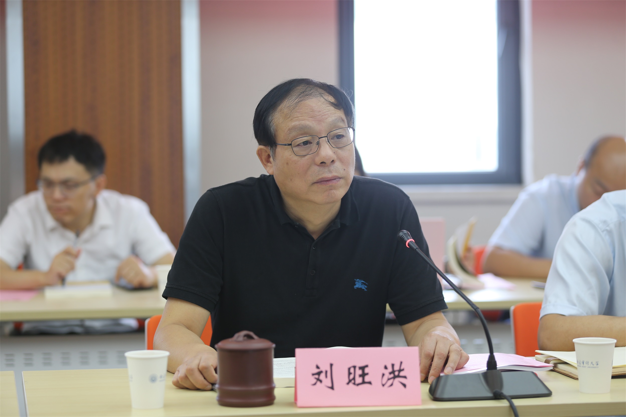 随后,审计法教研室代表肖建新、法学理论教研室代表刘爱龙、经济法教研室代表秦国荣、民商法教研室代表胡天成、国际法教研室代表殷楠、刑法教研室代表王刚、诉讼法教研室代表陈苏豪以及课程任课老师代表何永红、池通等老师依次发言,交流学习“习近平法治思想”的心得体会,并就如何将“习近平法治思想”融入教学和研究发表意见建议。