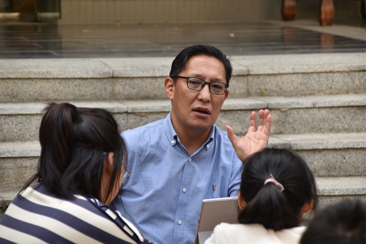 Kaniet从介绍自己作为一个看起来像中国人的外国人在日常生活中遇到的种种有趣经历展开话题。他与同学们分享了自己跨文化背景下经历的小故事,并介绍了相关文化差异,例如西方人在赠送花朵时通常选择奇数,偶数是不礼貌的;而在中国则恰恰相反,中国人更偏爱偶数。