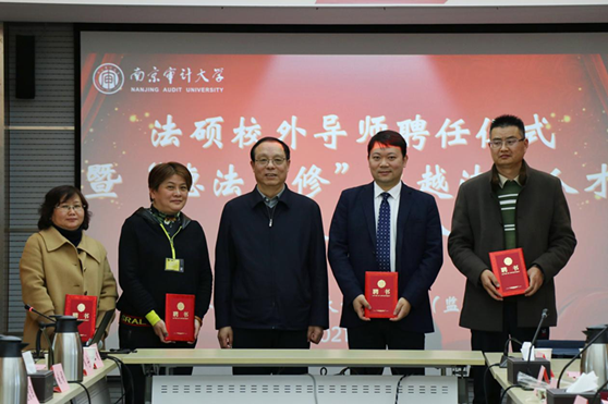 12月26日上午,由法学院主办的南京审计大学法律硕士校外导师聘任仪式暨“德法兼修”卓越法治人才培养研讨会在中和楼502会议室举行。来自党政机关、司法系统和律师界的新聘校外导师代表,我校党委副书记、校长刘旺洪出席会议,校党委研究生工作部部长鲁靖、法学院党政领导班子、教师代表、部分法律硕士研究生参加了会议。会议由法学院党委书记刘宏宇主持。