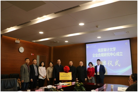 我校企业合规研究中心由江苏省人民检察院、南京市人民检察院、江苏省内部审计协会、江苏法治报社、南京仲裁委员会、南京市江北新区综合治理局、南京市江北新区人民检察院等单位指导成立,是依托我校法学院成立的又一科研平台,该中心将“审计+法律+管理+大数据”相融合,为企业经营外部监管法律风险,为企业内部审计管理提供咨询服务,为企业合规“落地”提供决策咨询,为国家和地方经济监督提供智力支持。