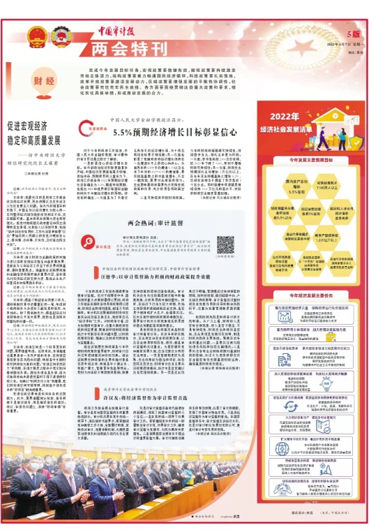 为更好报道两会的动态,中国审计报专门开辟了“两会专刊”,邀请全国领域的专家就两会的相关审计话题进行专题报道。3月7日出版的中国审计报“两会专刊”,对我校副校长董必荣教授和社会审计学院院长许汉友教授进行了专访。两位专家分别就“确保重大工程项目投资安全有效”和“将经济监督作为审计监督首选”的话题分享了自己的观点。