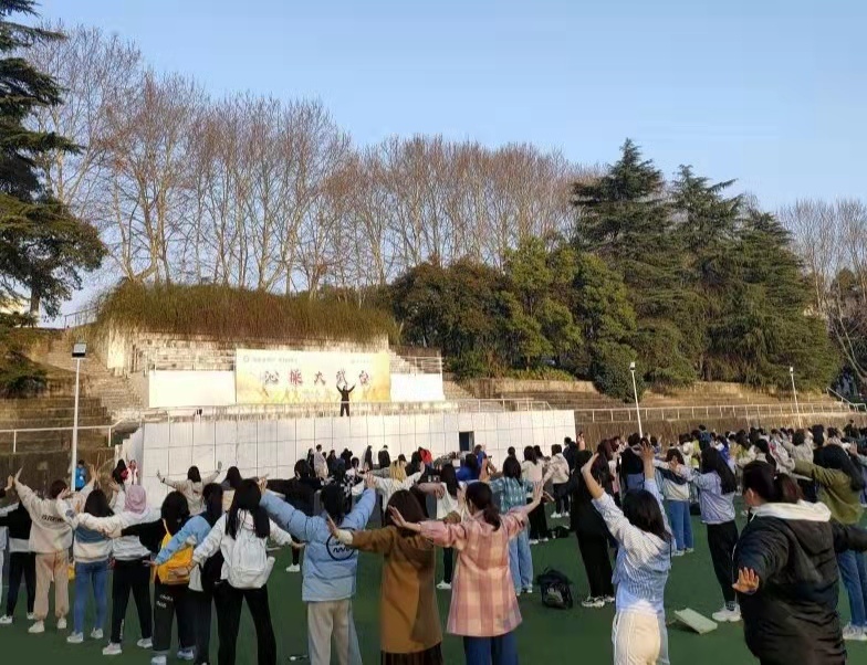3月8日清晨,新学期第一次“润操大舞台”、“沁操大武台”分别在润园运动场及沁园操场开展,《大梦想家》《八段锦》等音乐在操场响起,在体育与艺术教学部沈清、王思嘉、刘维烨三位老师的指导下,近千名学生随乐而动,气氛热烈活跃。
