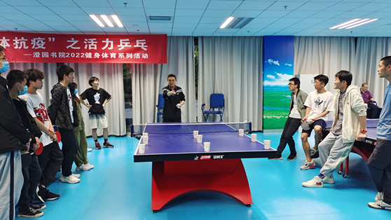 5月9日,澄园书院联合校体艺部共同开展了“师生共‘健’,以体抗疫”之活力乒乓活动,以此来丰富师生们的课余生活并给处在期中考试中的同学们舒缓解压。澄园书院党委书记张武宁、澄园书院副院长刘锦及体艺部乒乓专项老师张键参与指导交流。
