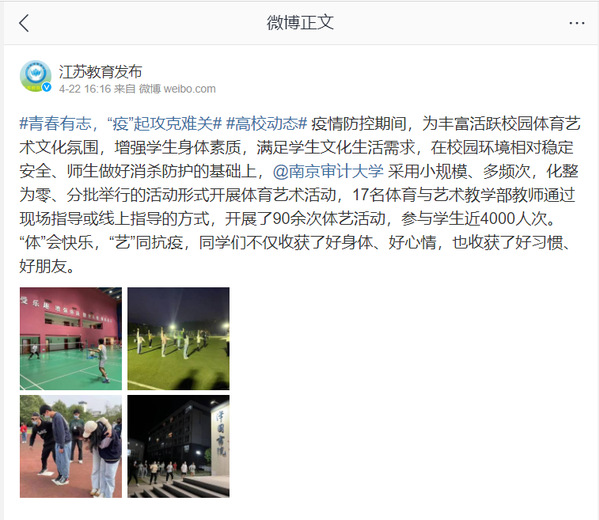 【江苏教育发布】省教育厅官方微博刊载多条南审校园动态