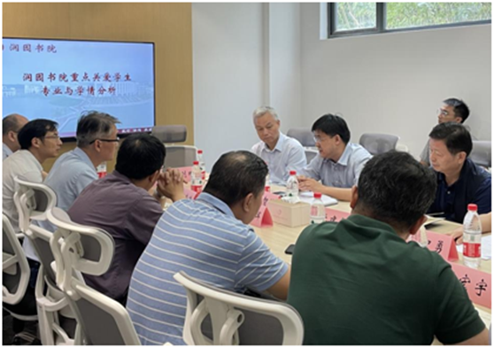 其次,润园书院党委书记王智源对于该书院重点关爱的学生进行专业与学情分析,希望可以基于学生学情调动更多资源,群策群力,制定更优的服务方案帮助学生。