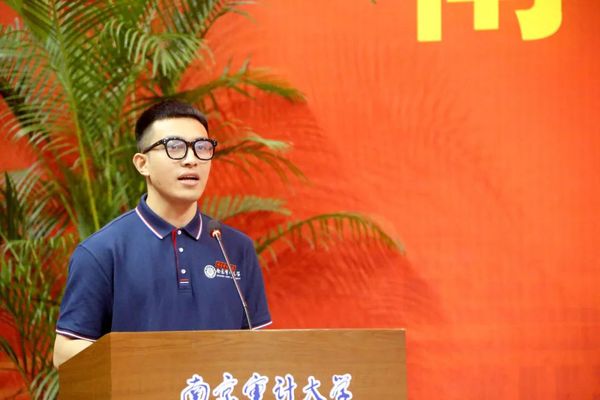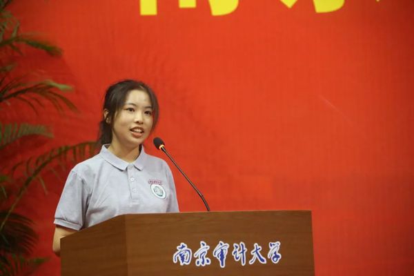 2022级审计学专业徐茗逸作为本科新生代表发言。她说:“选择南京审计大学审计学专业,是我一直以来的梦想。成为一名南审人,是幸运的,是自豪的。我们将在未来的四年学习生活中,用辛勤的汗水浇灌成长的花朵,用优异的成绩书写青春的答卷,用无畏的姿态勇攀学术的高峰。今天,我们以南审为荣,明天,南审将以我们为傲!”