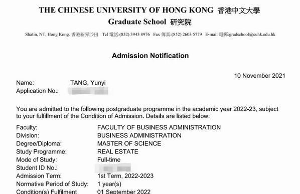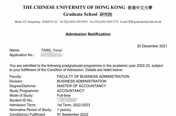 在拿到了香港中文大学房地产专业的offer之后,我又收到了会计专业的面试邀请,有了成功的铺垫,再加上在南审学到的理论知识,让我能对面试更加自信且勇敢地进行表达,不出意外顺利拿到offer。至此,我的申请阶段可以说已经完美收官了,在和爸妈商量后,我不再进行考研,而是迅速投入实习,去为下一阶段的成长做准备。