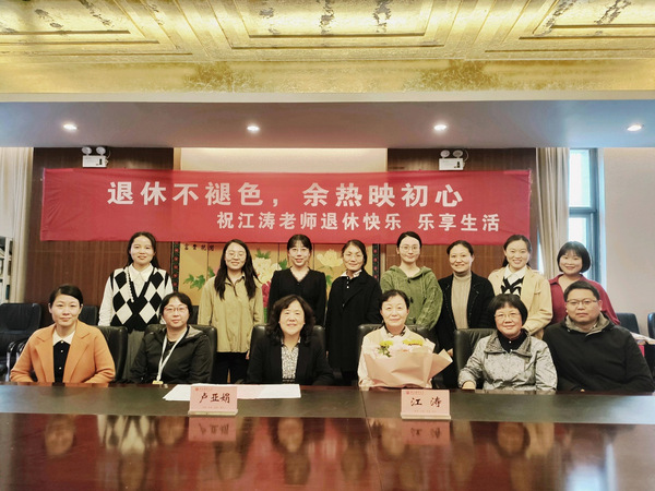 卢亚娟代表学校党委对江老师这位南审发展史的重要见证人、参与人和建设者奉献光荣的一生表达了感谢;对她几十年如一日精益求精、谨慎细致做好学校人事工作、处理各项疑难复杂问题的专业品质表示敬佩;对她即将开启的退休新生活表达了祝福,希望江涛老师退休后,退休不褪色,能经常回来看看,将多年的人事管理经验传授给部门年轻的同志,继续发光发热。她要求,人事处全体同志要以前辈为榜样,不忘初心,接续奋斗,共同为南审的人事人才工作开创新篇章。
