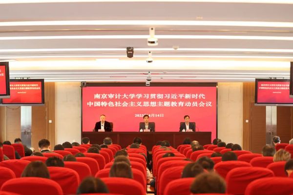 4月14日下午,南京审计大学学习贯彻习近平新时代中国特色社会主义思想主题教育动员会议在中和楼414报告厅召开。受学校党委委托,校党委副书记、校长董必荣作动员讲话。省主题教育第十八巡回指导组组长陈国祥出席会议并讲话,党委常委、纪委书记、省监委派驻南京审计大学监察专员龚亲华主持会议。