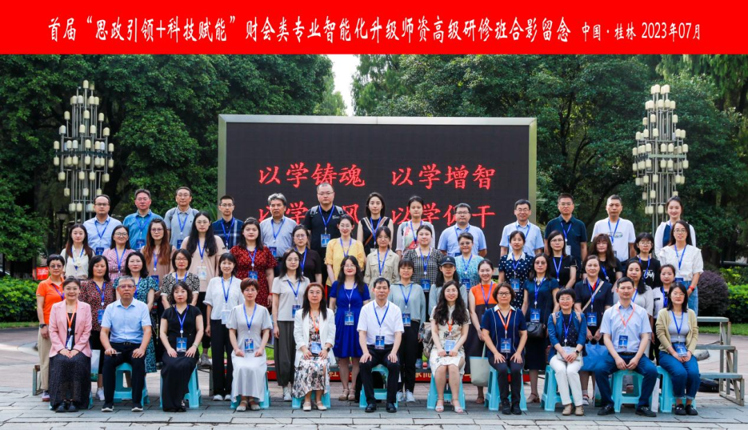 为践行“思政引领+科技赋能”的发展理念,坚定财会专业智能化升级发展道路,7月18日-23日,由我校会计学院主办,高等教育出版社协办的首届“思政引领+科技赋能”财会类专业智能化升级师资高级研修班在广西桂林举行。我校党委副书记、校长董必荣出席开班仪式并致辞,高等教育出版社经管法事业部主任于明出席并授课,我校会计学院院长温素彬、党委书记吴春梅和来自全国各地的五十多位财会类专业教师参加,来自南京理工大学、江苏大学、太原理工大学、江南大学、安徽财经大学、上海立信会计金融学院等高校的财会专业教师参加了本次研修。开班仪式由温素彬主持。