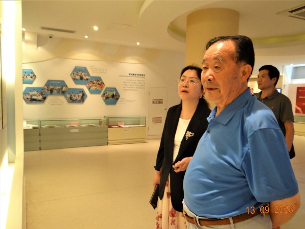 裴育副校长代表学校热烈欢迎李英俊的到来,向李英俊赠送了学校40周年校庆纪念礼品,并陪同李英俊一起参观了审计文化与教育博物馆。