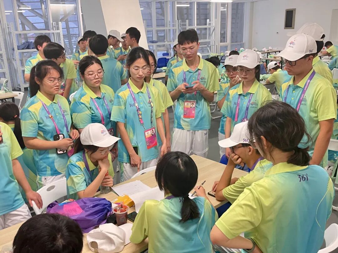 南审2020级软件工程专业学生常笑负责场馆H区下层看台观众咨询服务,回答和解决观众出入场和赛时提出的问题。“上岗期间朝五晚十二的作息和连续的站立难免带来身体上的劳累,但离场和观众说的每一声再见后收到的微笑和回应会抚平每天17个小时在馆的疲惫。”常笑说,在服务过程中,她真切地体会到了民族自豪感,每当中国队运动员获得奖牌时,全场齐唱国歌,掌声欢呼声久久不停歇。