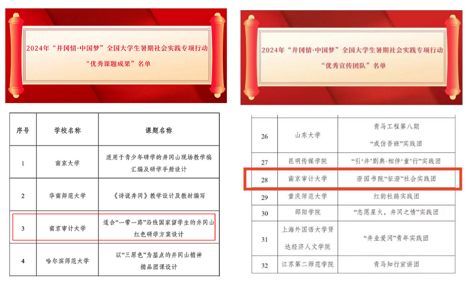 4月10日,团中央青年发展部、全国青少年井冈山革命传统教育基地管理中心发布了2024年“井冈情·中国梦”全国大学生暑期社会实践专项行动优秀课题成果、优秀宣传团队名单的公告。我校泽园书院“泽青井冈行”团队、澄园书院“征澄”团队分别获“优秀课题成果”与“优秀宣传团队”。