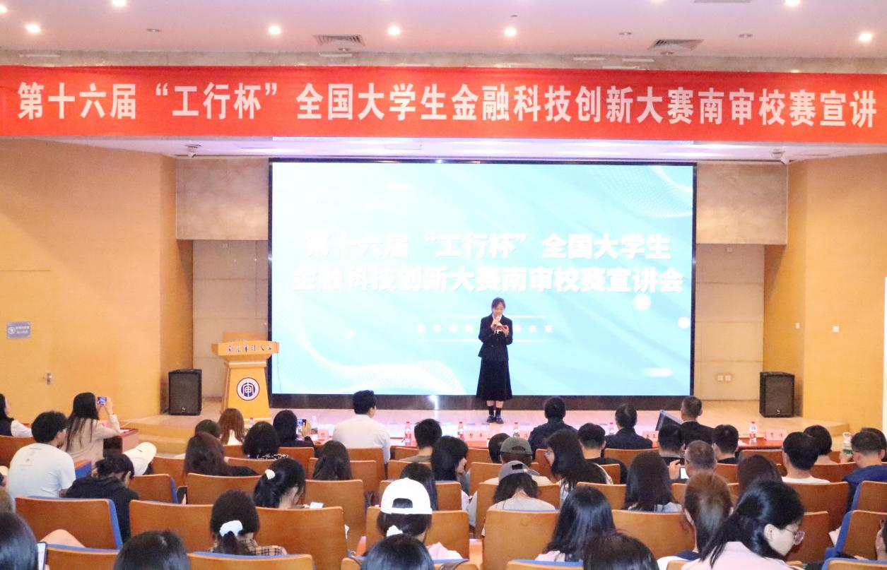 5月9日下午,第十六届“工行杯”全国大学生金融科技创新大赛南审校赛宣讲会在敏达学术报告厅二楼举行。工行江苏省分行、南京分行、汉府支行,南京农业大学金融学院和南京审计大学金融学院相关负责人、嘉宾代表、师生代表300余人参加活动。
