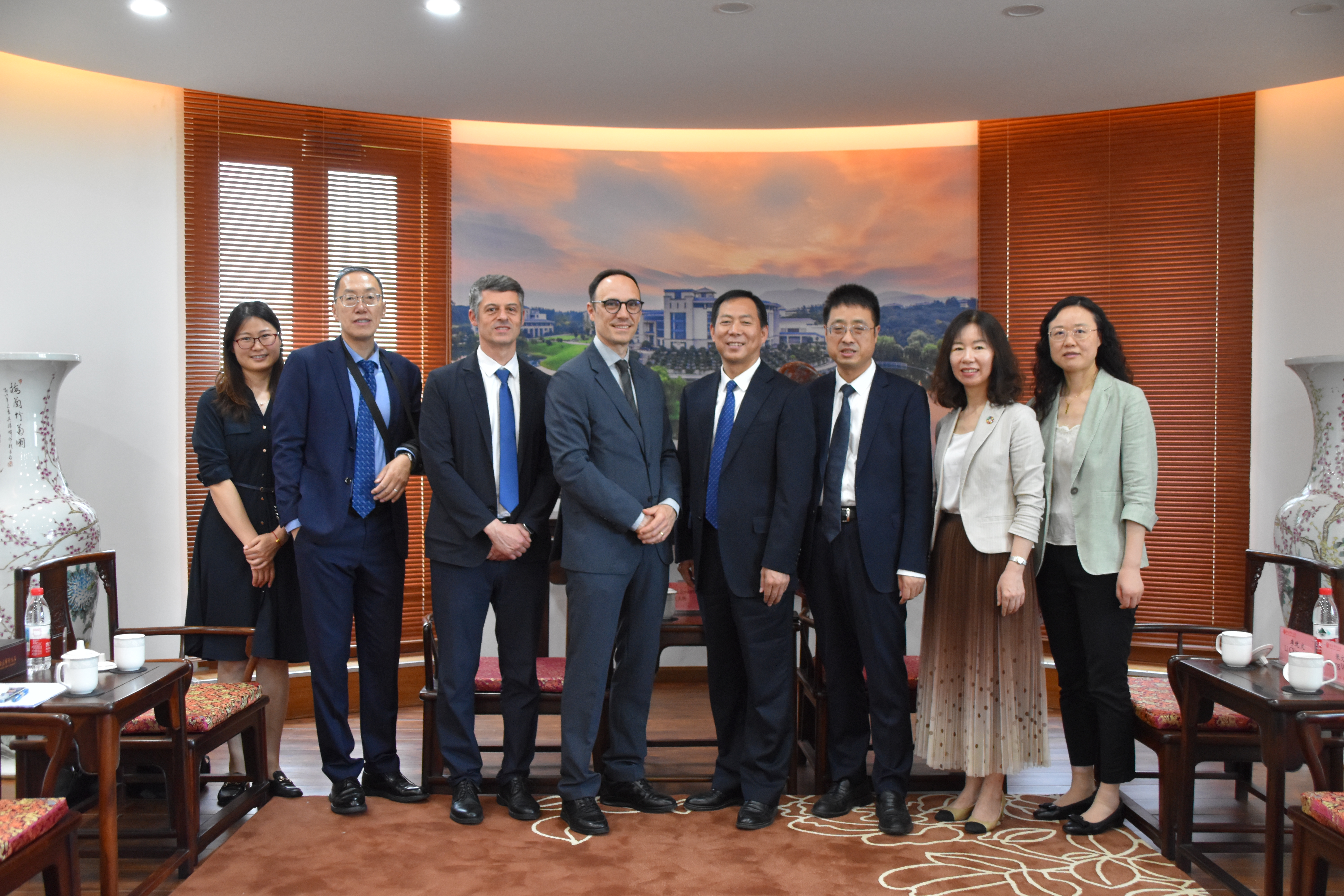 5月26日,法国驻上海总领事馆教育领事戴杰明和法国高等教育署上海中心负责人南子跃访问南京审计大学。校党委书记董必荣,党委常委、副校长李乾文出席,国际合作与交流办公室主任王芳,国际学院副院长(主持)张文秀和法方副院长窦文宇参会。