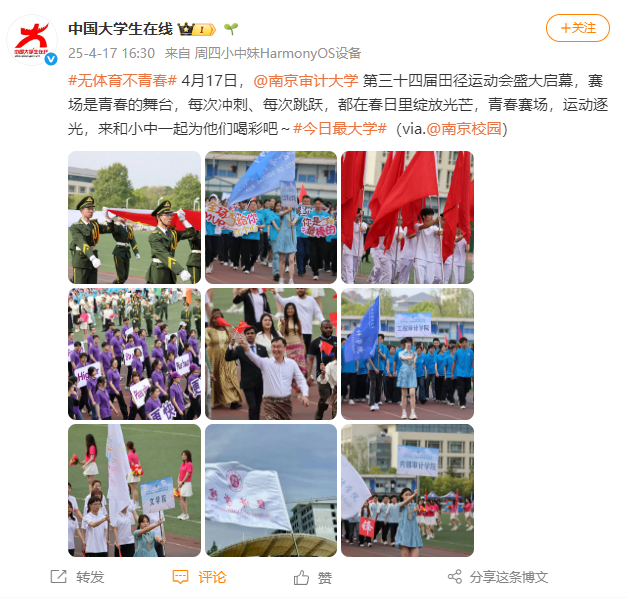 中国大学生在线(微博):南京审计大学第三十四届田径运动会