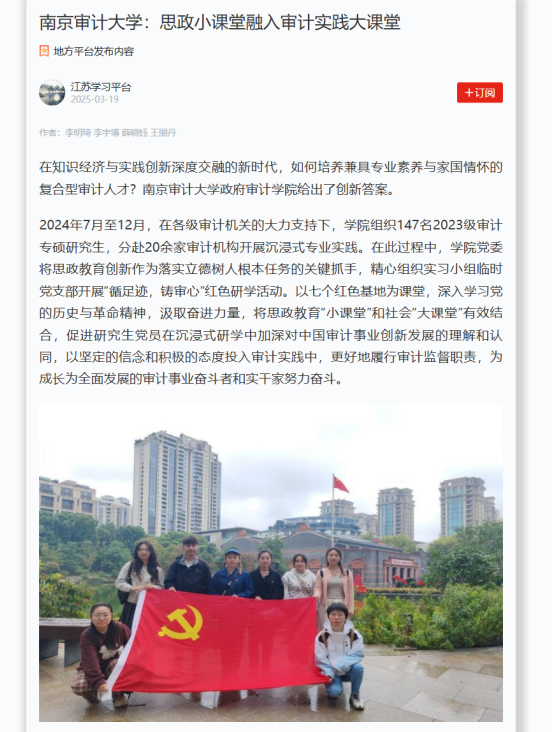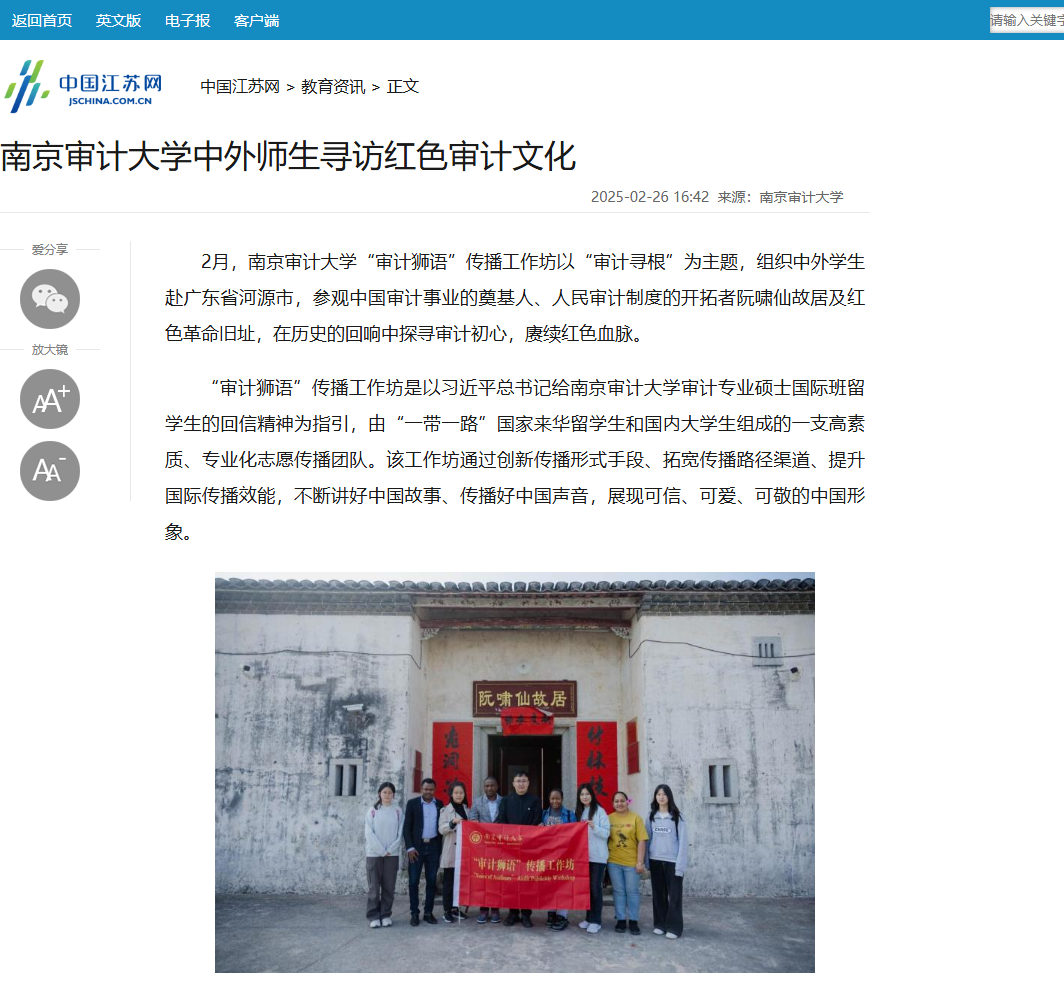 中国江苏网:南京审计大学中外师生寻访红色审计文化