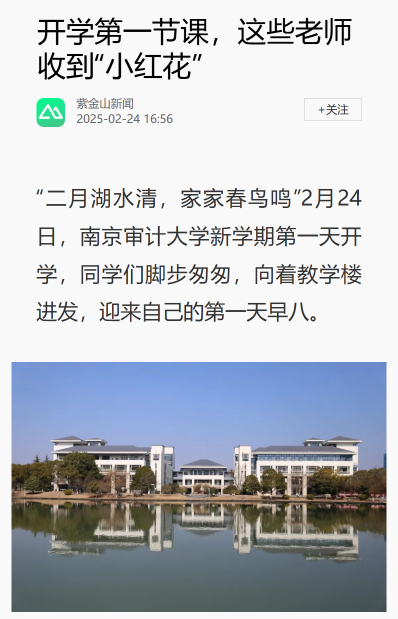 小编整理了南京审计大学2025年1-4月的外宣足迹。这些报道记录着校园里的探索与思考、坚守与温情,也汇集了社会各界的关注与支持。快来看看,有没有你熟悉新闻、场景和人物吧~