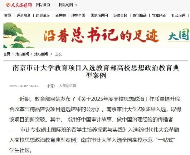 人民论坛网:南京审计大学教育项目入选教育部高校思想政治教育典型案例