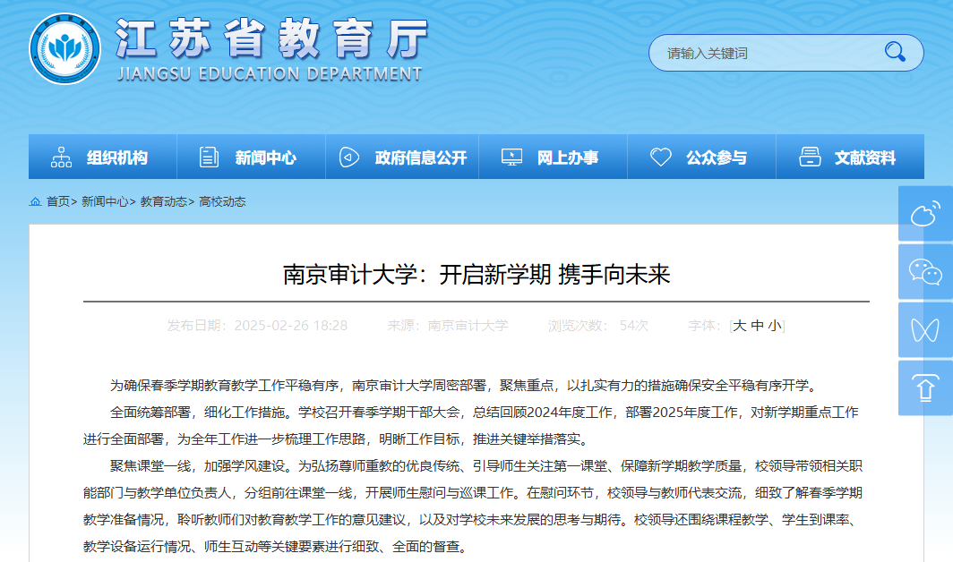 江苏省教育厅新闻网:南京审计大学:开启新学期 携手向未来