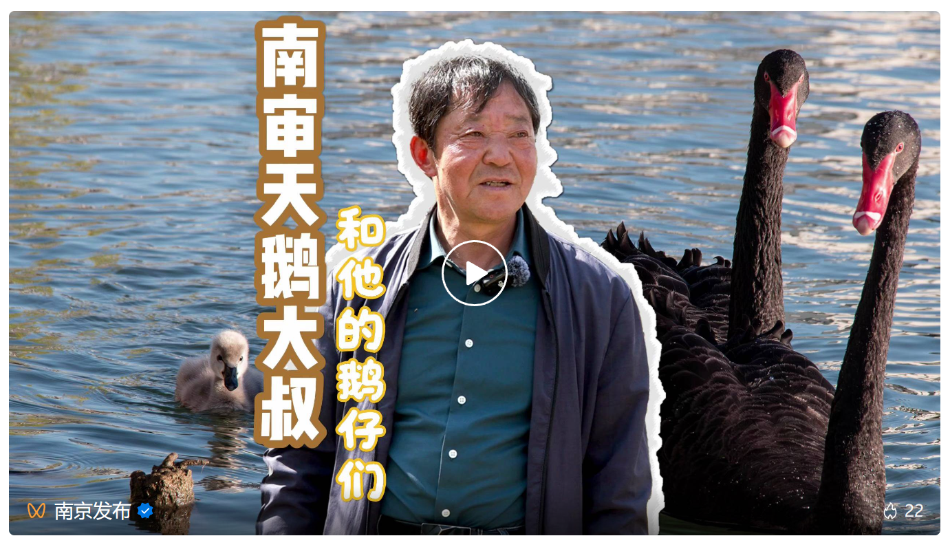中国青年报、南京发布:暖心!南审“天鹅大叔”与鹅仔们的故事